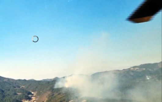 23일 경북 봉화군에서 발새한 산불을 진화하기 위해 접근하는 헬기. 산림청 |