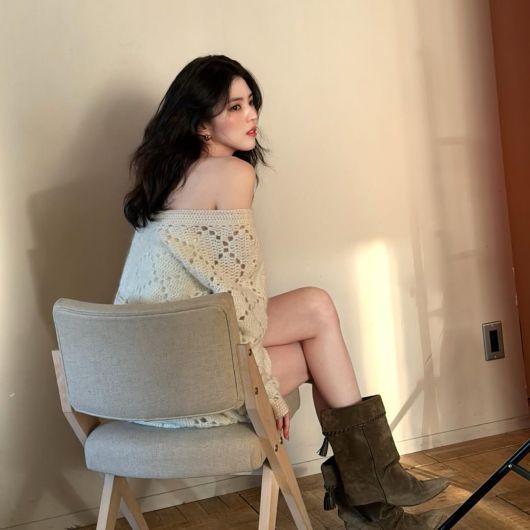 이어 한소희는 사진 촬영 중인 자신의 모습을 업로드했다. 어깨를 다 드러내는 아찔한 화보 의상에 새하얀 피부가 어우러져 시선을 사로잡았다.