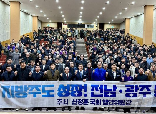 21일 한국에너지공대 대강당에서 열린 신정훈 국회 행정안전위원장 주최 전남·광주 행정통합 주민공청회./뉴스1 |