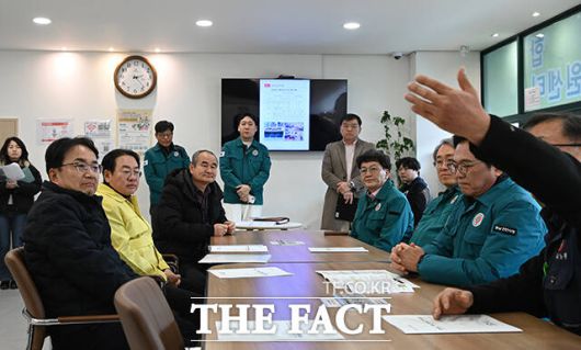 [더팩트ㅣ임영무 기자] 김광용 행정안전부 재난안전관리본부장(왼쪽 두 번째)이 23일 충남 천안시 이동노동자 쉼터를 방문해 운영 및 관리 실태를 점검하고 있다.