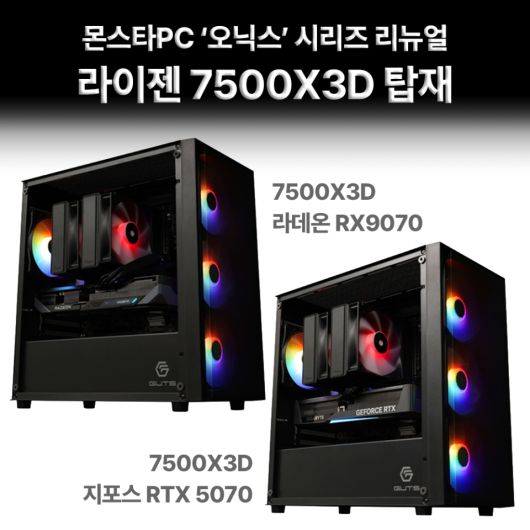 최근 출시된 라이젠 5 7500X3D는 AMD의 3D V-Cache 기술이 적용된 신규 라인업으로, 게이밍 성능에서 뛰어난 효율을 인정받으며 주목받고 있다. 몬스타PC는 이 신형 CPU를 자사의 인기 모델인 '오닉스' 시리즈에 바로 적용해 업그레이드 버전으로 내놓았다.