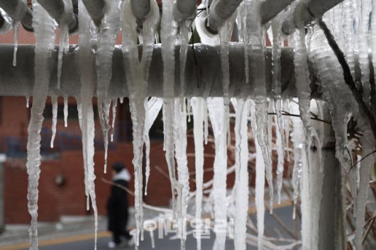 [이데일리 노진환 기자] 연일 한파가 이어지고 있는 23일 오후 서울 강남구 언주로의 한 주택가에 배수관이 동파돼 고드름이 얼어붙어 있다.