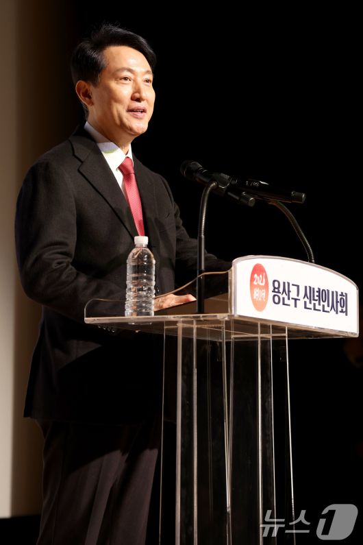 (서울=뉴스1) 이광호 기자 = 오세훈 서울시장이 23일 오후 서울 용산구청에서 열린 용산구 신년인사회에 참석해 새해인사를 하고 있다. 2026.1.23/뉴스1