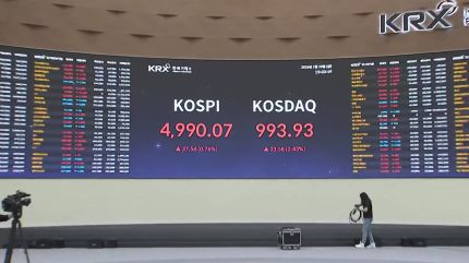 조금 전 4,990으로 마감하며 종가 기준 최고치를 기록했지만 5천 선은 지키지 못했습니다.