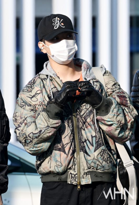 에이티즈 홍중이 출국하고 있다.