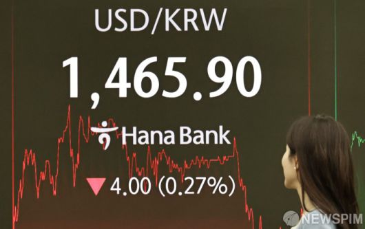 달러/원 환율 4.00원 하락하며 1465원대로 마감