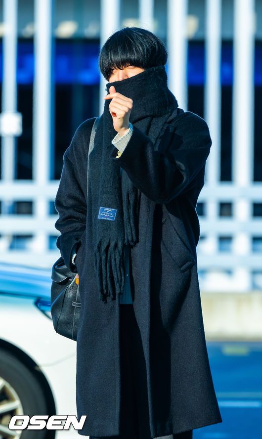 에이티즈 윤호가 출국 앞서 신호를 기다리고 있다. 2026.01.23 / soul1014@osen.co.kr