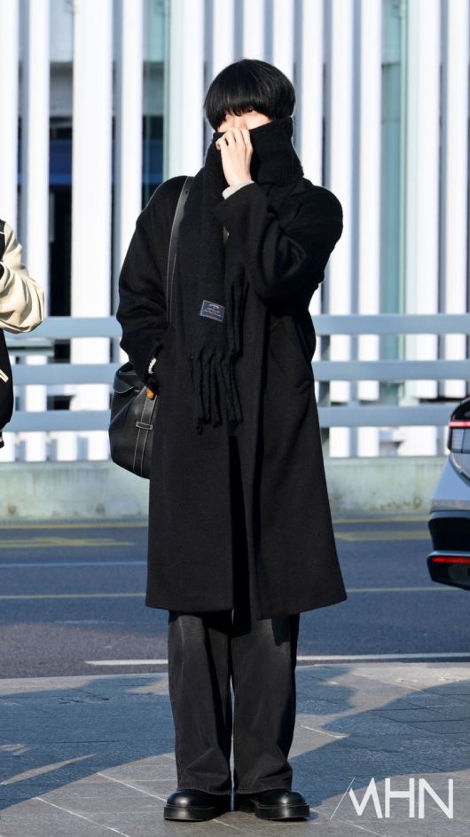 에이티즈 윤호가 출국하고 있다.