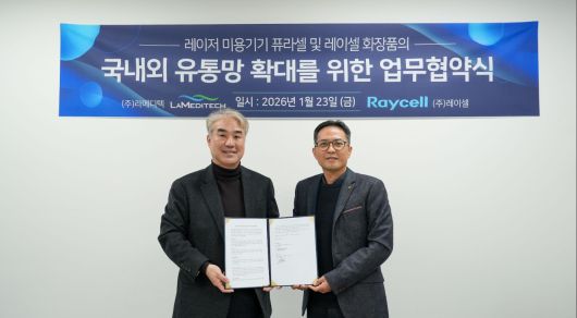 레이저 의료·미용기기 전문기업 라메디텍과 화장품 전문기업 레이셀은 레이저 미용기기와 화장품을 결합한 국내외 유통·판매망 확대를 위해 전략적 업무협약(MOU)을 체결했다고 23일 밝혔다.
