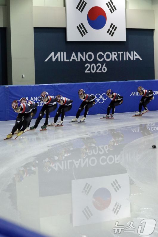 (진천=뉴스1) 김용빈 기자 = 쇼트트랙 국가대표 선수들이 동계올림픽 개막 14일 전인 23일 충북 진천국가대표선수촌 빙상장에서 훈련하고 있다. 2026.1.23/뉴스1vin06@news1.krCopyright ⓒ 뉴스1. All rights reserved. 무단 전재 및 재배포, AI학습 이용 금지.