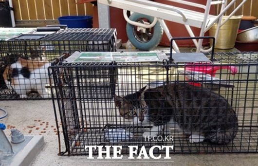 지난해 9월 경산시 용성면에서 포획된 길고양이들이 우리에 갇혀 중성화 수술을 기다리고 있다. /경산시 |
