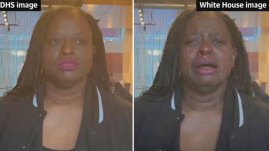 22일, 영국 일간 가디언은 백악관이 공식 엑스(X·옛 트위터) 계정에 올린 사진을 분석한 결과, 체포 당시 촬영된 여성의 모습이 울며 괴로워하는 표정으로 바뀌어 게시됐으며 피부 톤도 더 어둡게 보정됐다고 보도했다.