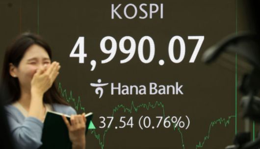 이날 코스피는 전 거래일보다 37.54포인트(0.76%) 오른 4990.07에 장을 마감했다. 출발은 뜨거웠다. 전일 대비 1.57% 상승하며 시작한 지수는 장 초반 거침없이 5000선을 탈환했고, 곧바로 5020선까지 도달하며 역대 최고 기록을 새로 썼다.