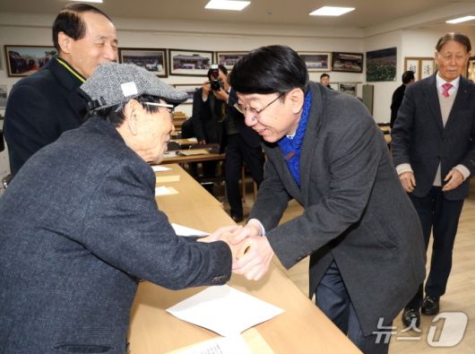 신년 인사차 기령당을 찾은 우 시장은 노인들과 일일이 인사를 나누며, 경로당 이용자 모두의 건강과 안녕을 기원했다.