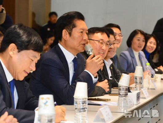 [진천=뉴시스] 서주영 기자 = 23일 충북 진천국가대표선수촌에서 열린 더불어민주당·국가대표지도자 간담회에서 정청래대표가 발언하고 있다. 2026.01.23. juyeong@newsis.com |