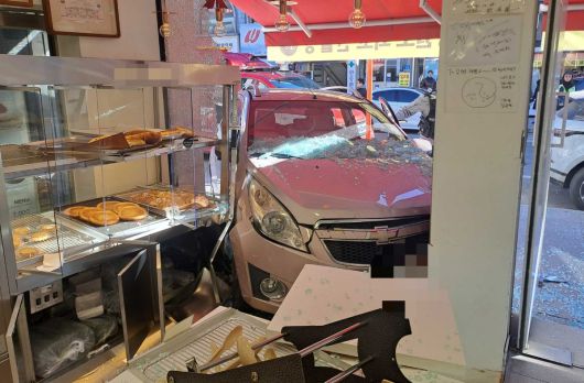 23일 낮 12시 45분쯤 강원 강릉시 금학동의 한 도로에서 40대 A씨가 몰던 스파크 승용차가 상가 건물로 돌진했다.