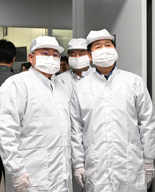 (서울=뉴스1) = 구윤철 부총리 겸 재정경제부 장관이 23일 오후 충북 음성군 소재 반도체 기업인 DB하이텍을 방문해 웨이퍼 생산시설을 둘러보고 있다. (재정경제부 제공. 재판매 및 DB 금지) 2026.1.23/뉴스1