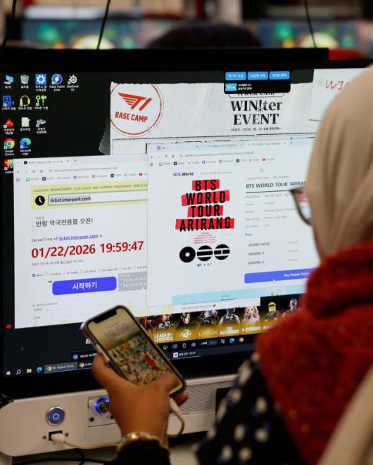22일 한 팬이 BTS의 한국 공연이 포함된 월드투어 티켓 예매를 위해 서울의 한 PC방에서 시간을 확인하고 있다.[사진=연합뉴스] |