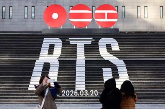 22일 오후 서울 종로구 세종문화회관 계단에 방탄소년단(BTS)의 정규 5집 컴백을 알리는 홍보물이 설치되어 있다./사진제공=뉴스1 |