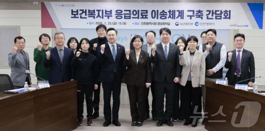 (서울=뉴스1) = 정은경 보건복지부 장관이 23일 오후 인천시청에서 열린 응급의료 간담회에서 유정복 인천시장을 비롯한 참석자들과 기념촬영을 하고 있다. (보건복지부 제공. 재판매 및 DB 금지) 2026.1.23/뉴스1urodoct2@news1.krCopyright ⓒ 뉴스1. All rights reserved. 무단 전재 및 재배포, AI학습 이용 금지.