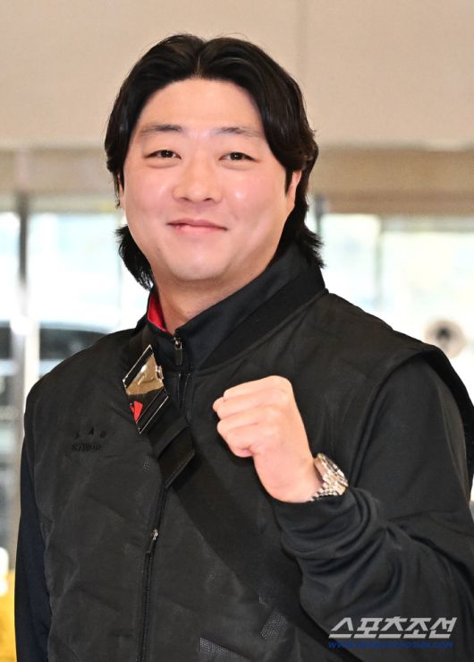 23일 오후 KIA 타이거즈 선수단이 김포공항을 통해 전지훈련이 열리는 일본으로 출국했다. 포즈를 취하고 있는 KIA 김범수. 김포공항=송정헌 기자songs@sportschosun.com/2026.01.23/