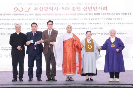 이어 "지난해 부산이 다양한 분야에서 우수한 성과를 거둔 만큼, 올해는 시민의 생명과 안전을 지키는 시정의 기본에 충실하면서 정책의 완성도를 높이겠다"며 "'글로벌 허브도시', '다시 태어나도 살고 싶은 부산'으로 도약하기 위해 종단 지도자들과 힘을 모아 나가겠다"고 덧붙였다.