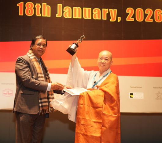대해 스님(오른쪽)이 다카국제영화제에서 작품상을 받는 모습. 영화로세상을아름답게 제공. |