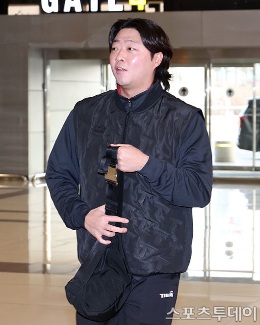 [김포공항=스포츠투데이 권광일 기자] KIA 김범수, 이태양이 23일 2026 시즌 준비 스프링캠프를 위해 23일 김포국제공항에서 출국을 준비하고 있다. 2026.01.23.