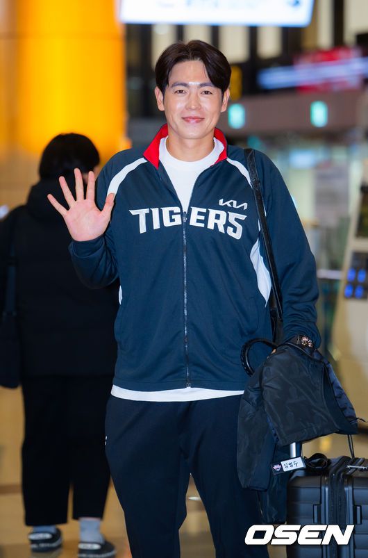 [OSEN=김포공항, 민경훈 기자] 2026시즌 스프링캠프 나서는 KIA 코칭스태프와 외국인 선수들이 23일 김포국제공항을 통해 일본 아마미오시마로 출국했다. 지난해 미국 캘리포니아 어바인에서 훈련했던 KIA는 일본 가고시마현의 외딴섬인 아마미오시마로 1차 훈련지로 정했다. KIA 이태양이 포즈를 취하고 있다. 2026.01.23 / rumi@osen.co.kr