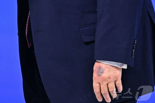 (다보스 AFP=뉴스1) 윤다정 기자 = 22일(현지시간) 스위스 다보스에서 열린 세계경제포럼(WEF) 연차총회(다보스포럼)에 참석한 도널드 트럼프 미국 대통령의 왼손 손등에 멍이 들어 있다. 2026.01.22. ⓒ AFP=뉴스1 Copyright ⓒ 뉴스1. All rights reserved. 무단 전재 및 재배포, AI학습 이용 금지.