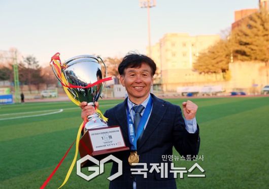 (김천=국제뉴스) 김병용 기자 = 작은 거인 오해종 감독이 대학축구 그랜드 슬램을 달성하자 끝내 눈물을 쏟았다. 이날 오해종 감독이 흘린 눈물의 의미는 학교와 선수들, 가족들에 대한 미안함과 감사를 담고 있다.
