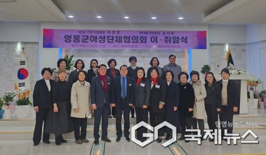 (영동=국제뉴스) 이재기 기자 = 충북 영동군여성단체협의회는 23일 여성회관 웨딩홀에서 여성단체협의회 역대 회장 및 회원 등 100여 명이 참석한 가운데 제16~17대 이은주 회장과 제18대 김진희 회장의 이·취임식을 개최했다.