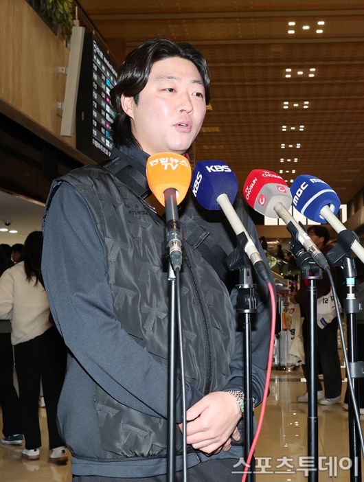 [김포공항=스포츠투데이 권광일 기자] KIA 김범수가 23일 2026 시즌 준비 스프링캠프를 위해 23일 김포국제공항에서 출국 전 인터뷰를 하고 있다. 2026.01.23.