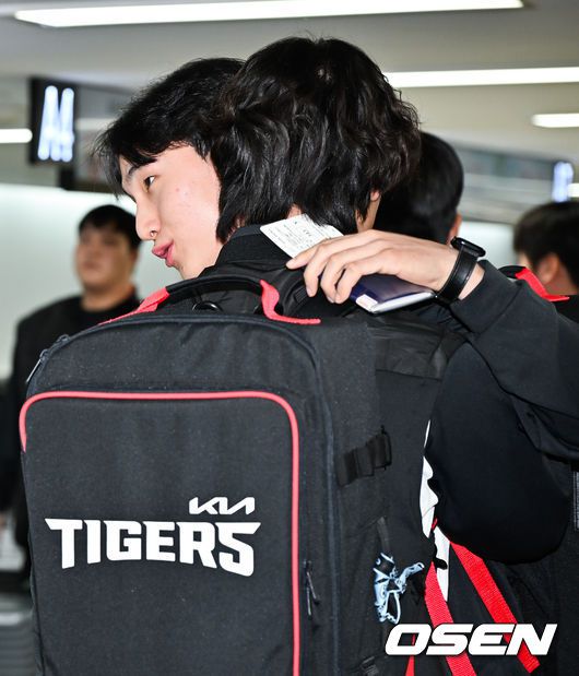 [OSEN=김포공항, 민경훈 기자] 2026시즌 스프링캠프 나서는 KIA 코칭스태프와 외국인 선수들이 23일 김포국제공항을 통해 일본 아마미오시마로 출국했다. 지난해 미국 캘리포니아 어바인에서 훈련했던 KIA는 일본 가고시마현의 외딴섬인 아마미오시마로 1차 훈련지로 정했다. KIA 정해영이 곽도규와 포옹을 하고 있다. 2026.01.23 / rumi@osen.co.kr
