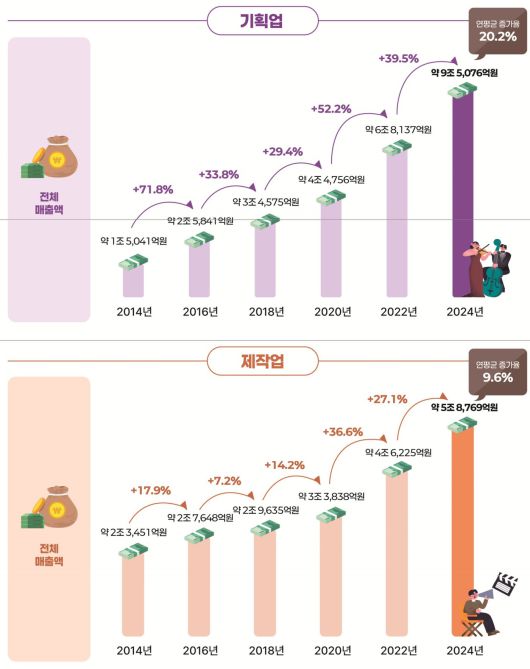 이번 실태조사는 우리나라 대중문화예술산업이 지금 어떤 모습인지 한 번에 살펴보기 위한 조사다. 이번 조사는 2022년 조사와 비교해, 최근 2년 동안 산업이 얼마나 커졌는지도 함께 보여준다.