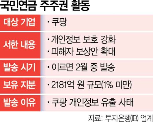 국민연금 수탁자책임위원회가 이르면 다음 달 중 쿠팡에 주주서한을 발송할 예정이다. 대규모 고객 정보 유출 사태가 발생하면서 정보 보안을 강화하고 피해자들에게 배상을 확대하라는 내용이 담길 것으로 전해졌다.