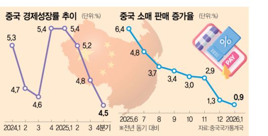 외부 환경도 녹록지 않다. 지난해 10월 미중 정상회담이 이뤄지면서 최악의 관세전쟁은 피했지만 두 나라는 반도체와 에너지 자원을 놓고 여전히 팽팽한 긴장감을 지속하고 있다. 극우 성향의 다카이치 사나에 일본 총리의 ‘대만 유사시 개입’ 발언 이후 일본과의 관계가 악화된 것도 올해 중국 대외 경제의 큰 변수로 작용할 것으로 전망된다. 한 소식통은 “경제성장률 목표 하향은 미국의 관세정책 향방과 침체된 국내 부동산 시장 등 불확실성이 가득한 올해에 대응할 정책적 유연성을 제공할 것”이라고 평했다.