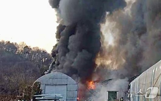 (시흥=뉴스1) 김기현 기자 = 23일 오후 4시 52분께 경기 시흥시 계수동 한 비닐하우스에서 불이 났다.
