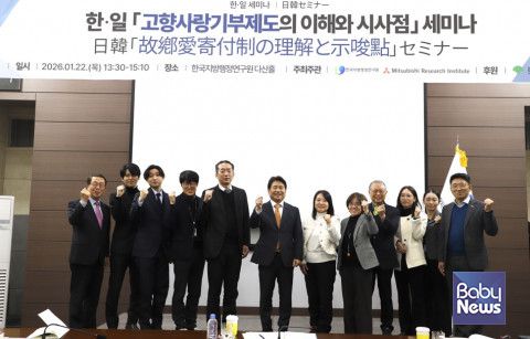 세미나는 '고향사랑 기부제 운용 성과와 과제’를 주제로 한 한국지방행정연구원 고향사랑연구지원단 유보람·전영준 부연구위원의 발표와 '일본 고향납세 운영의 성과와 과제’를 주제로 한 미쓰비시총합연구소 아베 마치코 수석연구원의 발표로 진행됐다.