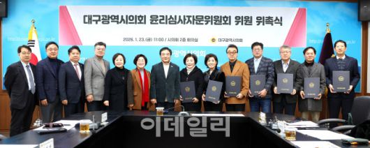 [대구=이데일리 홍석천 기자] 대구시의회는 23일 시의회 2층 회의실에서 ‘대구광역시의회 윤리심사자문위원회’ 위원 위촉식을 개최했다고 밝혔다.