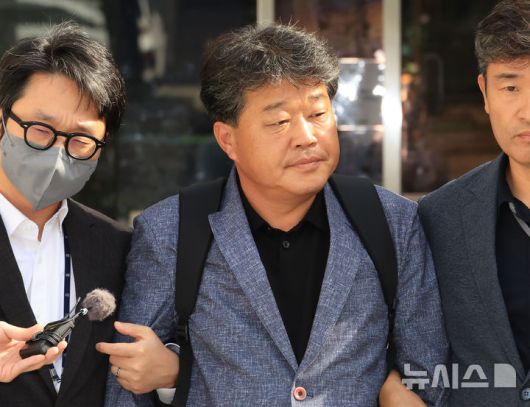 [서울=뉴시스] 홍효식 기자 = 정치자금법 위반 혐의를 받는 박창욱 경북도의원이 지난해 9월 15일 오후 서울 서초구 서울중앙지방법원에서 열린 구속 전 피의자 심문(영장실질심사)을 마친 뒤 법원을 나서고 있다. (공동취재) 2025.09.15. photo@newsis.com |