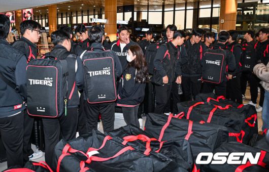 [OSEN=김포공항, 민경훈 기자] 2026시즌 스프링캠프 나서는 KIA 코칭스태프와 외국인 선수들이 23일 김포국제공항을 통해 일본 아마미오시마로 출국했다. 지난해 미국 캘리포니아 어바인에서 훈련했던 KIA는 일본 가고시마현의 외딴섬인 아마미오시마로 1차 훈련지로 정했다. KIA 선수들이 출국길에 오르고 있다. 2026.01.23 / rumi@osen.co.kr