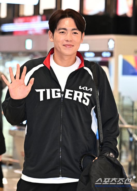 23일 오후 KIA 타이거즈 선수단이 김포공항을 통해 전지훈련이 열리는 일본으로 출국했다. 인사를 하고 있는 KIA 이태양. 김포공항=송정헌 기자songs@sportschosun.com/2026.01.23/