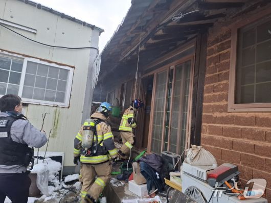 소방당국이 23일 오후 5시 13분쯤 전남 함평군 한 주택에서 발생한 화재를 진화하고 있다.(전남소방본부 제공. 재판매 및 DB금지) 2026.1.23/뉴스1 |