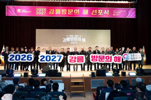 23일 강릉시는 시청 대강당에서 김홍규 강릉시장, 최익순 시의회 의장, 최길영 국제관광도시 시민실천운동 추진위원회 위원장을 비롯한 유관기관장과 시민 등 1,000여 명이 참석한 가운데 '2026-2027 강릉 방문의 해' 선포식을 개최했다.