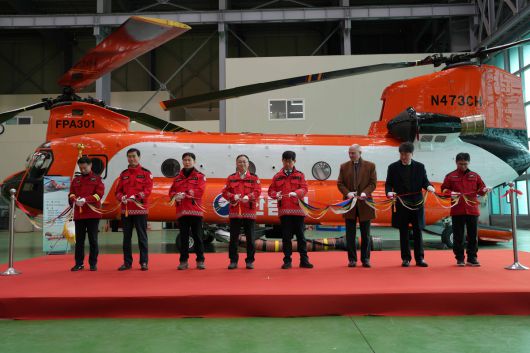 산림청이 23일 강원 원주시 산림항공본부에서 시누크 헬기 도입식을 열고 있다. 산림청 제공 |