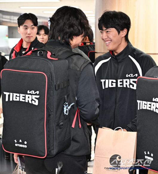 23일 오후 KIA 타이거즈 선수단이 김포공항을 통해 전지훈련이 열리는 일본으로 출국했다. 인사를 나누고 있는 KIA 곽도규, 이의리. 김포공항=송정헌 기자songs@sportschosun.com/2026.01.23/
