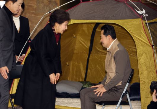 박근혜 전 대통령이 22일 국회 본청 로텐더홀에서 단식 8일차에 접어든 장동혁 국민의힘 대표를 만나 단식 중단을 요청하고 있다. 연합뉴스 |