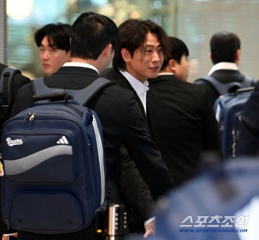 두산 베어스 선수단이 23일 인천공항을 통해 전지훈련지인 호주 시드니로 출국했다. 박찬호가 동료들과 이야기를 하고 있다. 인천공항=허상욱 기자wook@sportschosun.com/2026.01.23/