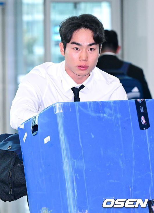 [OSEN=인천공항, 최규한 기자] 프로야구 두산 베어스가 2026 시즌을 준비하기 위해 23일 오후 인천공항을 통해 호주로 출국했다. 두산은 호주 시드니에서 1차 캠프를 진행한 뒤, 일본 미야자키에서 2차 캠프를 이어간다. 두산 오명진이 출국을 준비하고 있다. 2026.01.23 / dreamer@osen.co.kr